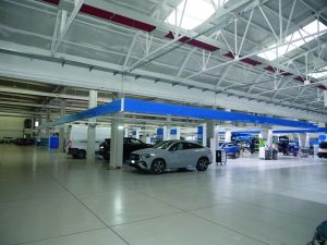 Ogni area è progettata con spazi ampi, passaggi facilitati per i veicoli e postazioni di lavoro distanziate, per migliorare ergonomia, sicurezza e qualità operativa. Anche la logistica dei ricambi segue la logica di prossimità, con magazzini ricambi di reparto posizionati vicino alle rispettive aree produttive per ridurre tempi morti e movimentazioni inutili.